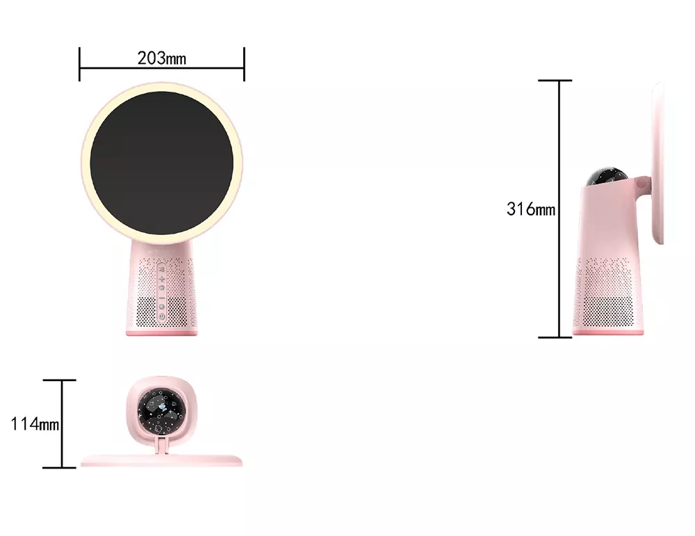 SYNST (China), Hersteller von Unterhaltungselektronik, Waschtisch mit LED-Spiegel. Dieses Produkt zeichnet sich durch sein schlichtes, aber elegantes Design aus. Seine Größe beträgt 203 x 114 x 316 mm, klein und tragbar, egal ob auf der Kommode im Schlafzimmer, auf dem Schreibtisch im Büro oder zum Mitnehmen, es nimmt nicht zu viel Platz ein. Sein raffiniertes Erscheinungsbild und die glatten Linien machen ihn zu einem stilvollen Accessoire, das mit einer Vielzahl von Einrichtungsstilen kombiniert werden kann. Durch die breite Basis steht das Produkt problemlos auf verschiedenen Oberflächen. Der Spiegel hat eine Spiegelgröße von 145 mm und bietet ein weites und klares Sichtfeld, sodass Sie beim Schminken jedes Detail problemlos erkennen können. Der Rand des Spiegels besteht aus hochwertigen Materialien, die nicht nur robust und langlebig sind, sondern auch ein Gefühl von Luxus vermitteln. Gleichzeitig ist die Gesamtfarbe des Produkts harmonisch und vermittelt den Menschen ein angenehmes und angenehmes visuelles Gefühl.